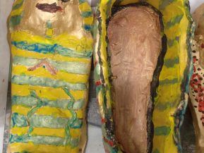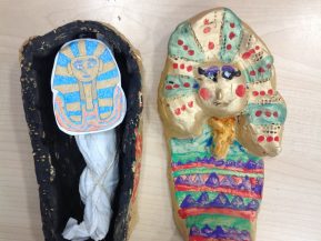 Today we added the detail to our sarcophagi. It is so nice to see the two classes working so well alongside each other and concentrating hard on being careful with their painting. We think they look great!