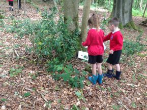 This week at Forest School we found lots of leaves and seeds that had been blown down from the trees by the wind. Mostly they were from sycamore and ash trees, we enjoyed collecting them and filling our pockets! We had time to explore and find other interesting things, then we did a hunt for different nature pictures around the woods. We searched for a…