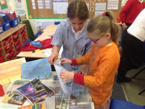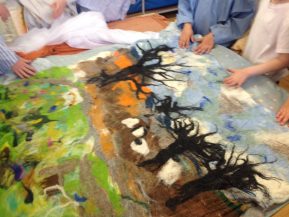 As part of Arts week we have an artist, Julie Harrison, in helping us to create our own felt hangings. Today, the whole school worked together to recreate the beautiful view from our field. We are really pleased with the results, and we can't wait to make the second one tomorrow!