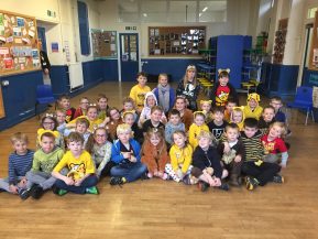 The children got all dressed up to raise money for Children in Need today. Some were spotty .... some were yellow .... some were comfy....and we even saw a few Super Pudseys! ThankĀ you for bringing in cakes to sell - we enjoyed eating them!