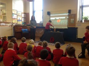 This morning we held our Remembrance assembly in school. Councillor Clarke joined us to read out names of soldiers from Lindale and the children took part by placing crosses at the front of the hall, one for each soldier. They also showed paintings they had done, read poems they'd written and prayers of remembrance.