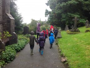 This afternoon we went for a walk in the rain. We went up to the church to walk through the grounds and look at the trees and plants. In a few weeks we will go back to see how the plants have changed. We have also made some bread rolls using an old recipe. It was like the bread they would have eaten in the…